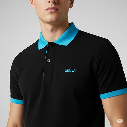 নেভি ব্লু কন্ট্রাস্ট: নেভি ব্লু কলার, কাফ এবং নেভি ব্লু 'Mafia' লোগো, যা একটি মার্জিত এবং ট্রেন্ডি স্টাইল তৈরি করে।