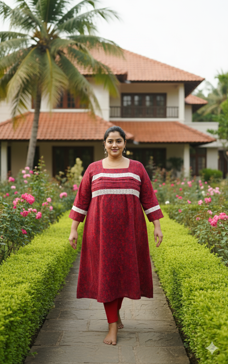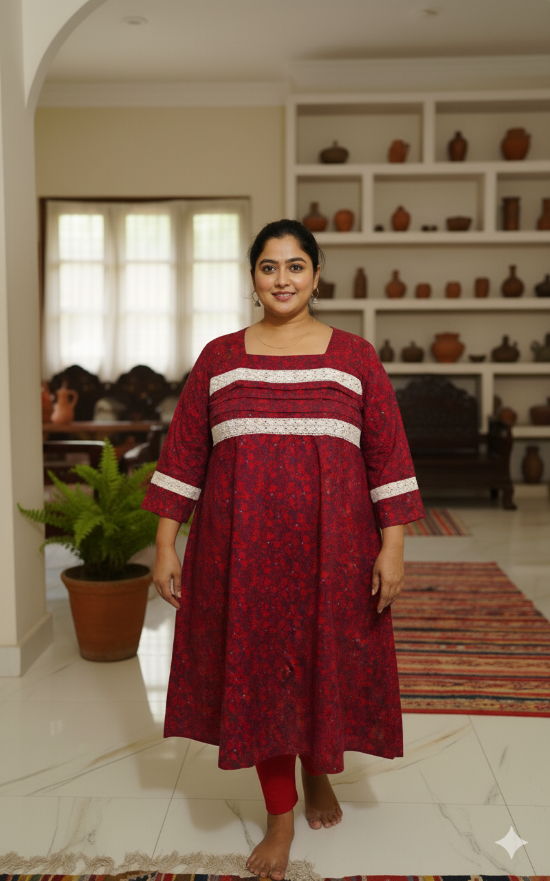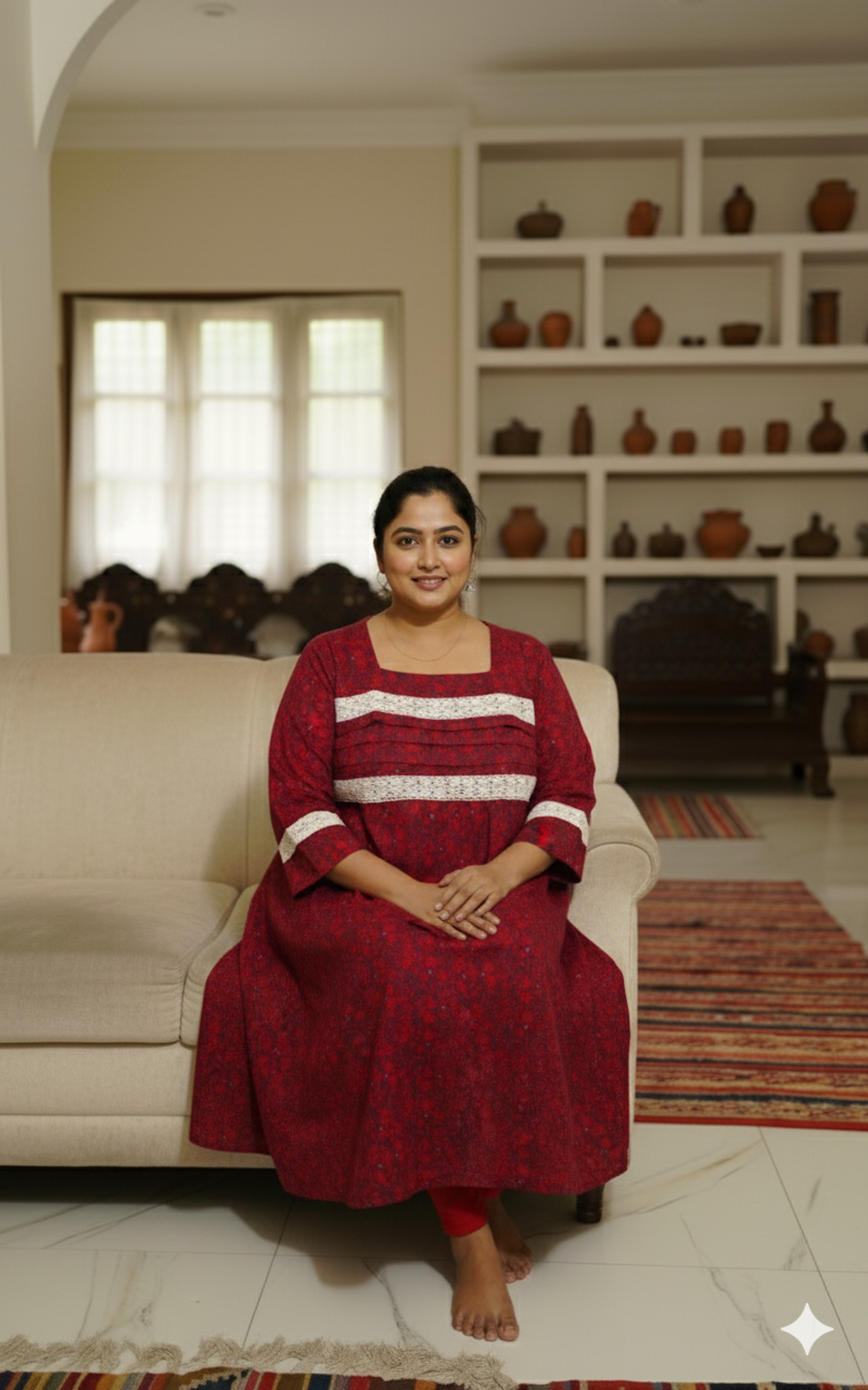 স্টাইলিশ ও ফ্লোই: ঢোলাঢোলা (A-line) কাটের কারণে পেটের বৃদ্ধি সত্ত্বেও আরামদায়ক ও স্টাইলিশ দেখায়।