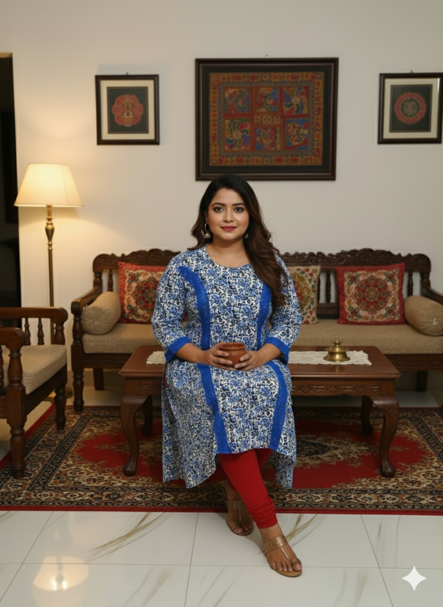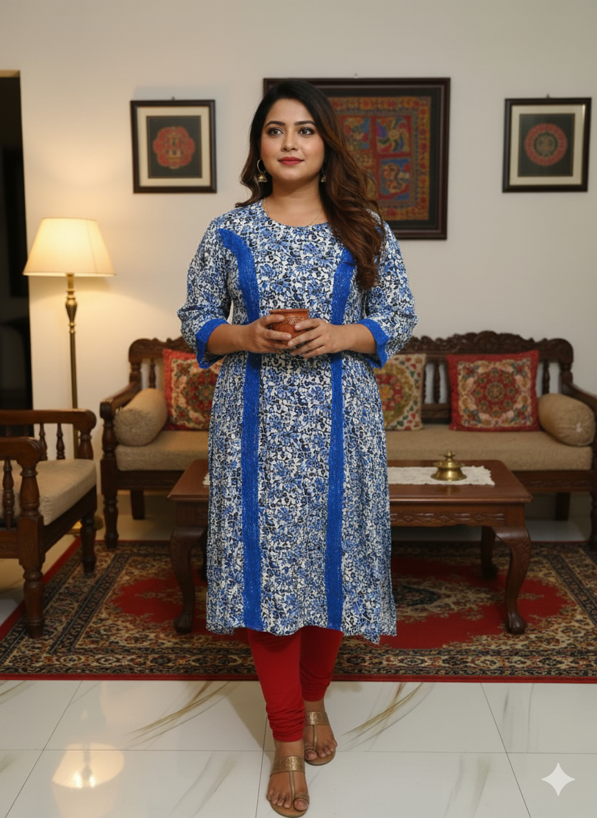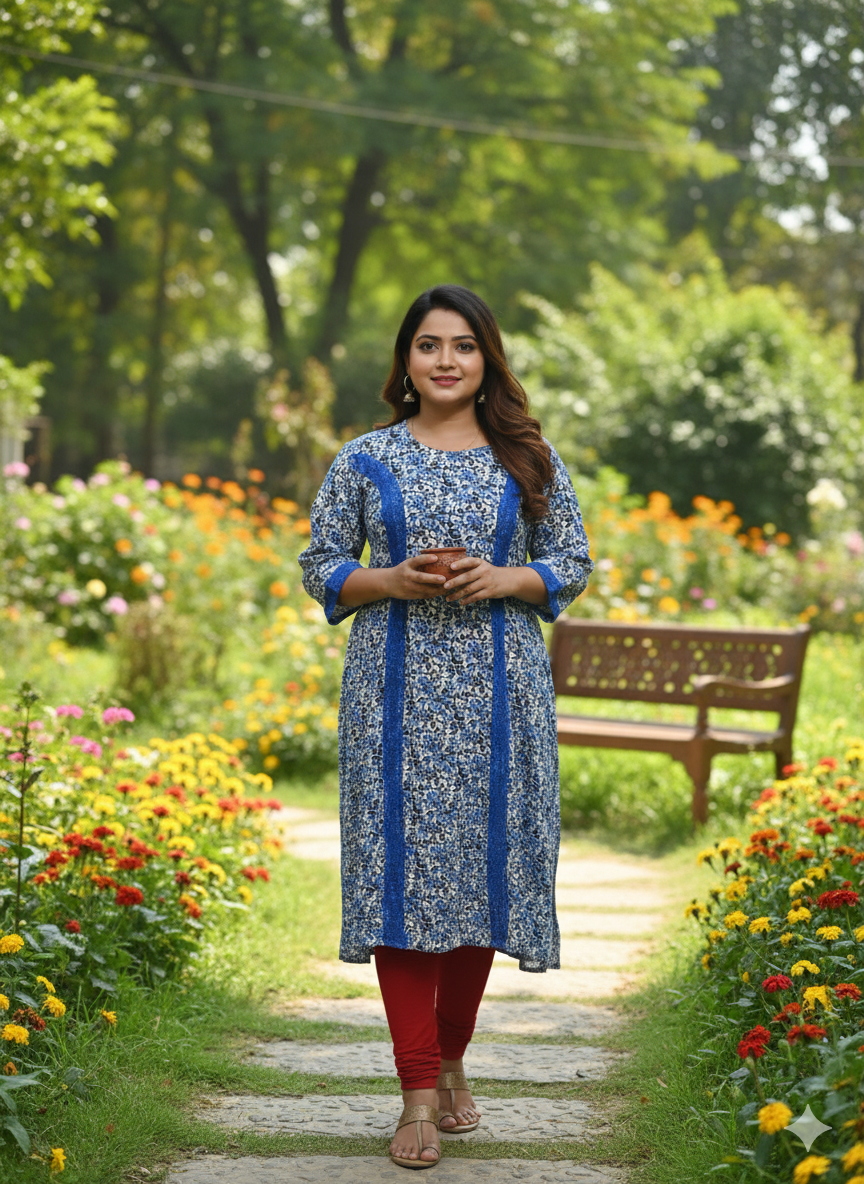 স্টাইলিশ ও ফ্লোই: ঢোলাঢোলা (A-line) কাটের কারণে পেটের বৃদ্ধি সত্ত্বেও আরামদায়ক ও স্টাইলিশ দেখায়।