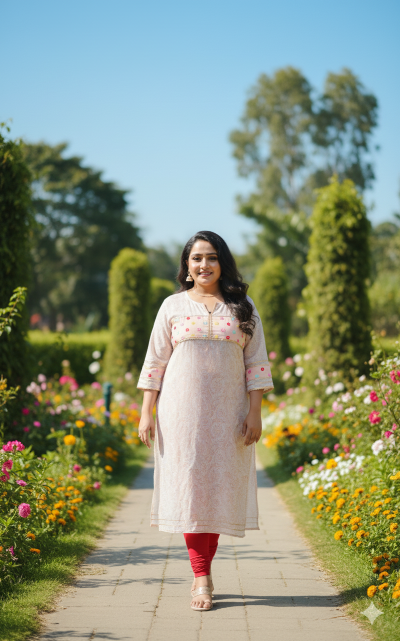 স্টাইলিশ ও ফ্লোই: ঢোলাঢোলা (A-line) কাটের কারণে পেটের বৃদ্ধি সত্ত্বেও আরামদায়ক ও স্টাইলিশ দেখায়।